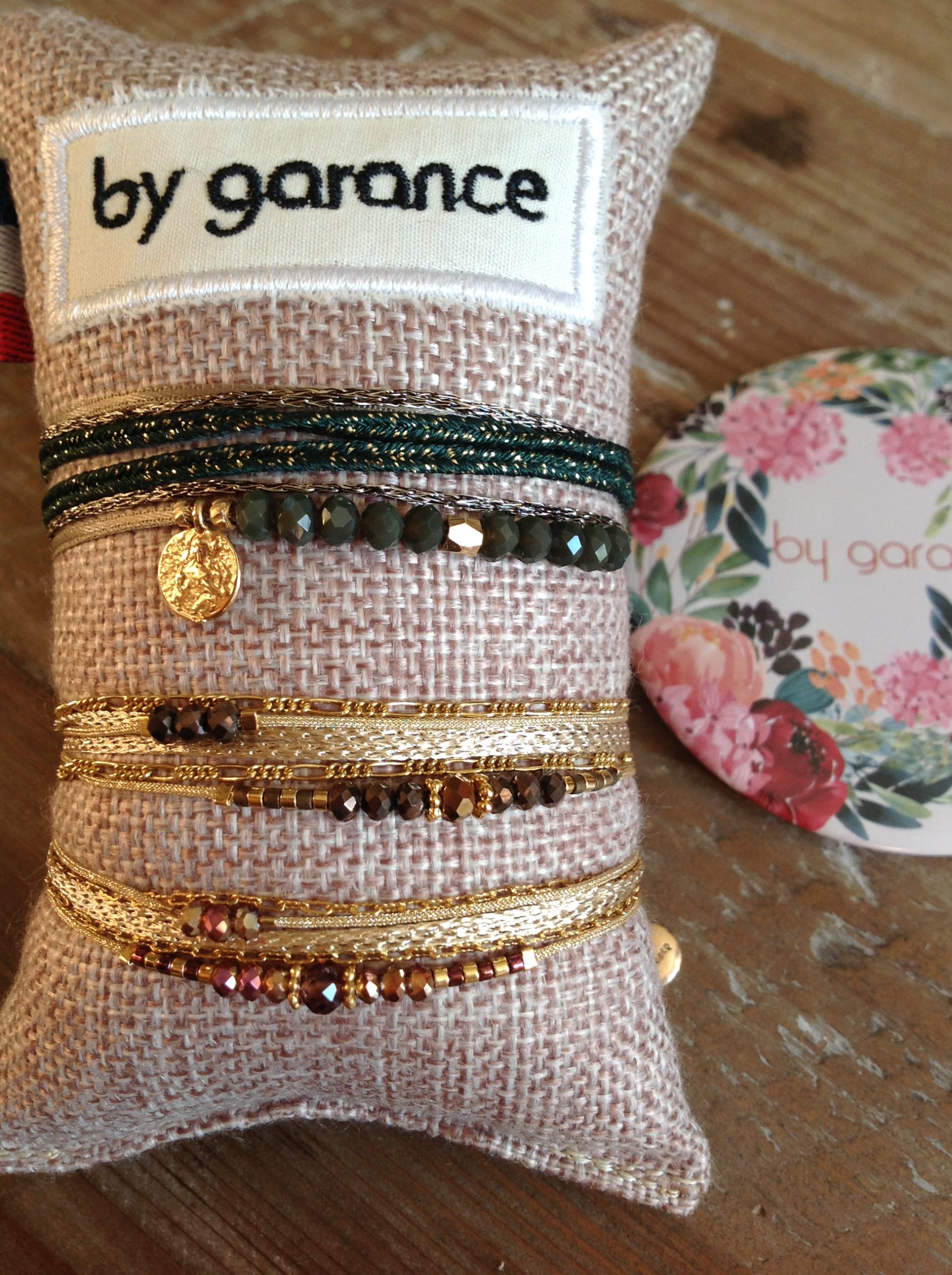/ Bracelets By Garance, multi liens double tour vert bronze