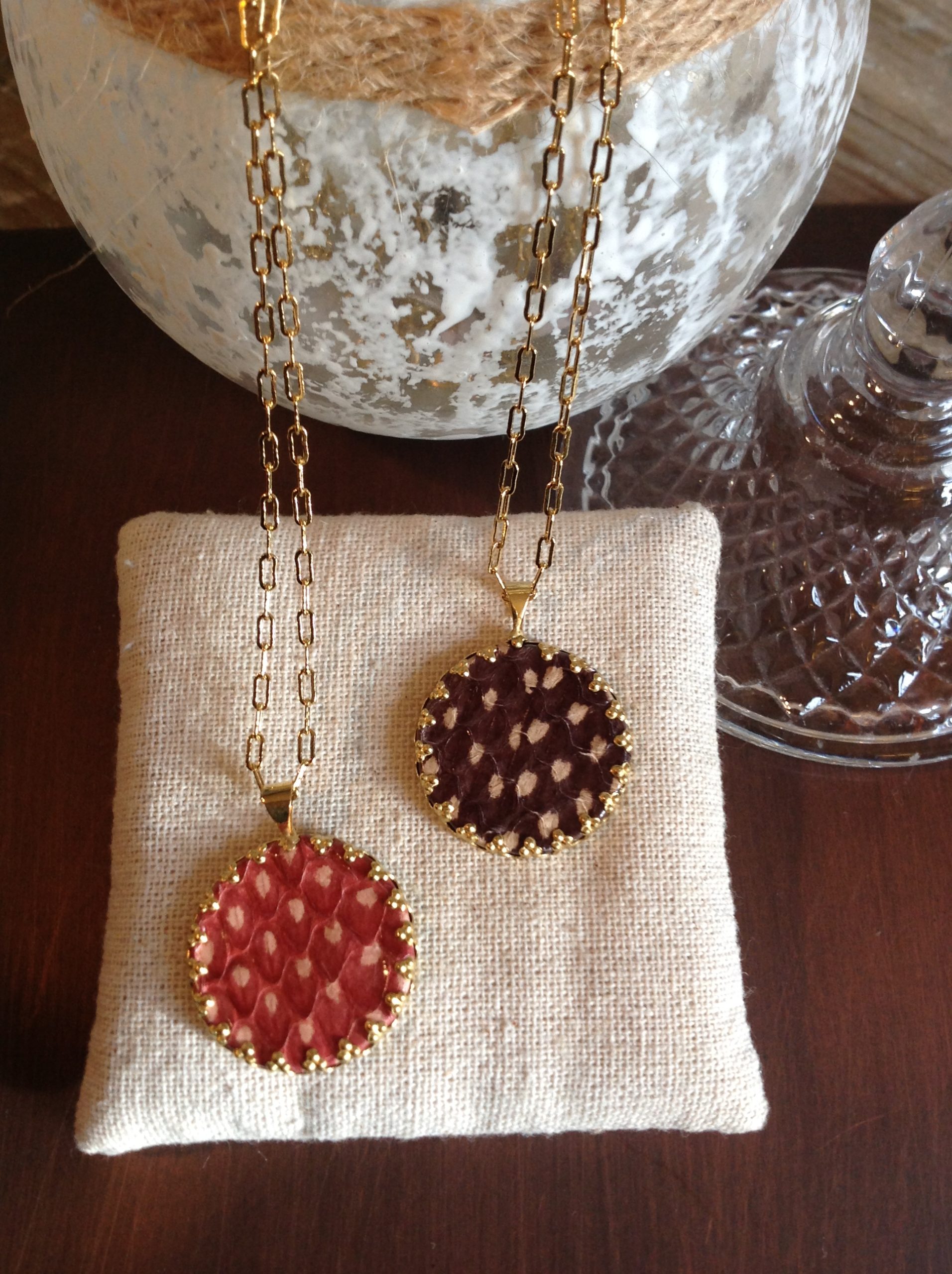 Collier pampille cuir grand format, mi long